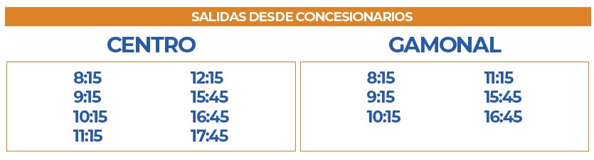La furgoneta que presta el servicio de Transporte a Clientes tiene los siguientes horarios: