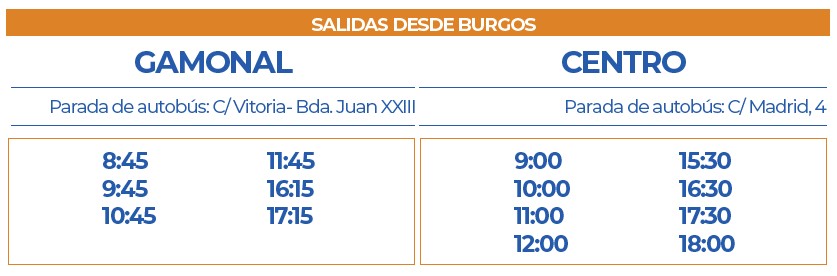 Cubrimos los trayectos de ida y vuelta con paradas en el centro de Burgos y en el populoso barrio de Gamonal.
